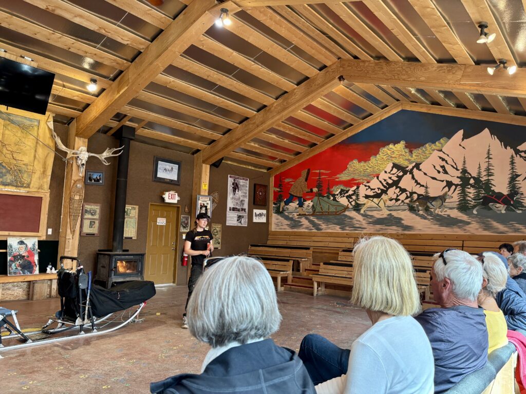To this day, many rural Alaskan communities rely on working dogs, and during our visit to the sled dog kennel, it becomes clear how the Iditarod honors this legacy. We see firsthand how mushers and dogs prepare and learn about the clothing, equipment, and supplies required to finish a race that can last up to two weeks.