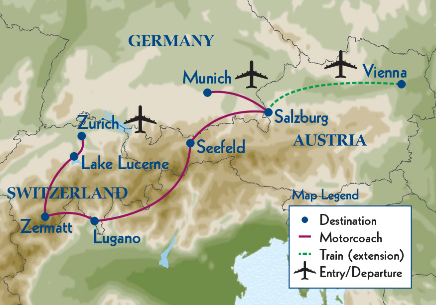 | 4 | Lake Lucerne/Zermatt B B Lake Lucerne/Zermatt Read More We transfer today to car-free Zermatt in the shadow of the Matterhorn. On tours departing June through September, we make this drive via the winding roads of the Furka Pass, known for its stunning vistas and featured in the James Bond film Goldfinger. When the pass is closed, we travel via Bern, where we enjoy a walking tour of the Swiss capital, then stop at the resort town of Montreux for views across Lake Geneva. We arrive in Täsch late this afternoon, then take a short train ride to Zermatt. Dinner tonight is on our own. We transfer today to car-free Zermatt in the shadow of the Matterhorn. On tours departing June through September, we make this drive via the winding roads of the Furka Pass, known for its stunning vistas and featured in the James Bond film Goldfinger. When the pass is closed, we travel via Bern, where we enjoy a walking tour of the Swiss capital, then stop at the resort town of Montreux for views across Lake Geneva. We arrive in Täsch late this afternoon, then take a short train ride to Zermatt. Dinner tonight is on our own. |